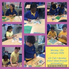 Year 5 used different textures, media's and resources to explore printmaking backgrounds.