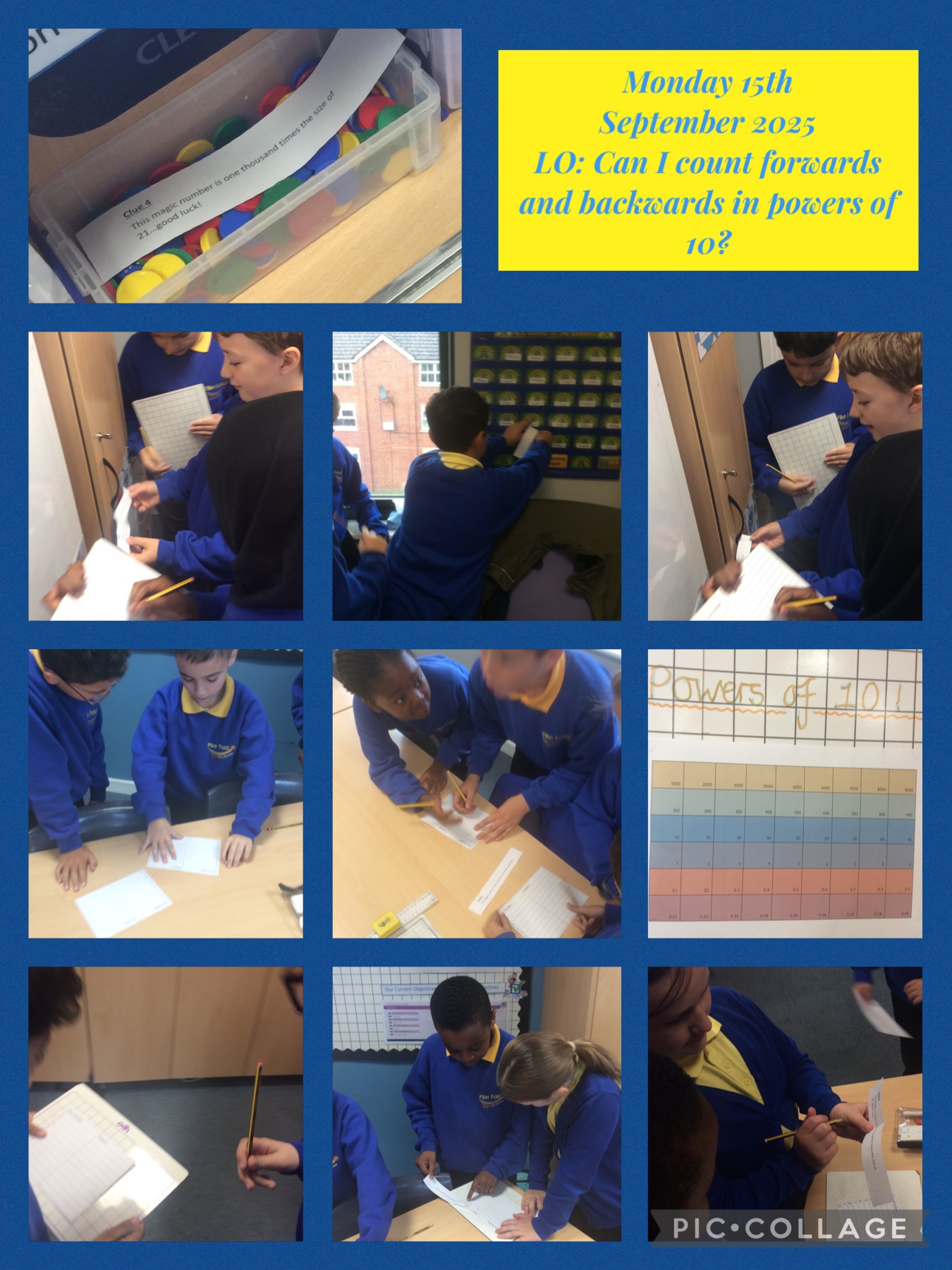 Year 5 used their knowledge of 'powers of 10' to answer hidden clues dotted around the classroom.