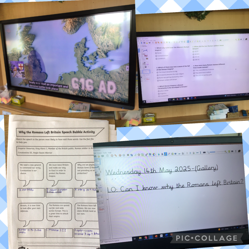 We discussed why the Romans left Britain and different groups reaction to it. We also looked at what happened in the aftermath of their departure.